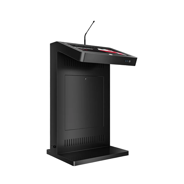 Мультимедийное решение, которое позволяет не только ярко выступить на большую аудиторию, с отображением презентационного материала, но и эффектно продемонстрировать рекламную информацию о компании, предлагаемых товарах / услугах, спикере, на большом внешнем дисплее трибуны. Модель Double 27" оснащена мощным микрофоном, сенсорным дисплеем для спикера, а также большим внешним дисплеем для рекламного контента и набором разъемов для подключения дополнительной техники. Такая трибуна станет прекрасным помощником на конференциях, выставках, спортивных мероприятиях или других мероприятиях, где требуется визуальная поддержка презентаций и общение с аудиторией.