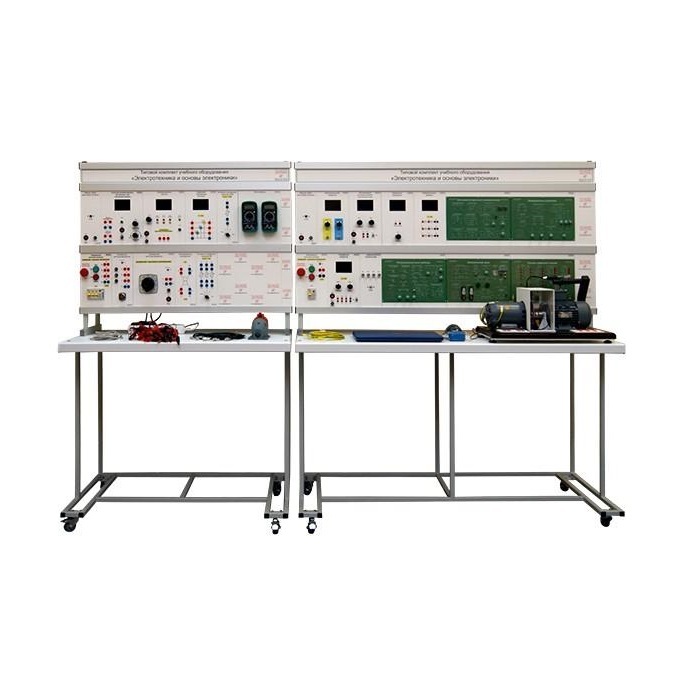 Учебное оборудование «Электротехника и основы электроники» выполнено в стендовом исполнении: стойки с установленными модулями установлены на собственных лабораторных столах.